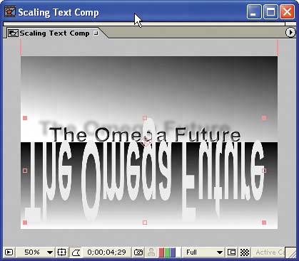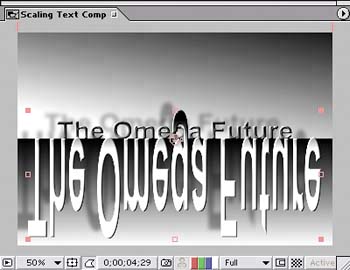 | 2. | Expand the Text Reflection layer's Transform group, and change the Scale to 125, -570 to enlarge and invert the image.