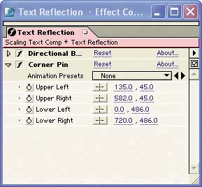 | 6. | To align the reflection with the title, set the Corner Pin effect's values to the following: