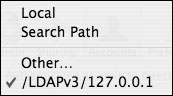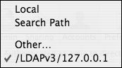 Figure 13.29. Select the appropriate directory database from this pop-up menu.  | 4. | From the accounts list, select the computer list for which you wish to configure restricted workgroup access (Figure 13.30).