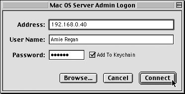 | 5. | Install and configure Mac OS X Server. Please refer to Chapter 1 ("Planning and Installation") and the beginning of this chapter for installation and configuration information.