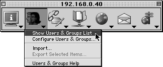 Figure 2.76. Click the Users and Groups icon, and then select Show Users & Groups List from the drop-down menu.  The Users & Groups list appears.