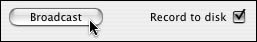 Figure 2.127. Click the Broadcast button to begin the live media stream.  Selecting the "Record to disk" check box saves the streamed file to the local hard disk for future streaming.