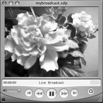 Figure 2.129. The QuickTime Player window opens, and you can view the live broadcast.  There will be a slight delay in the broadcast due to compression time and network overhead.