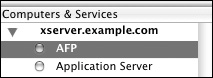 | 2. | Select the AFP service for your server in the Computers & Services list (Figure 5.15).