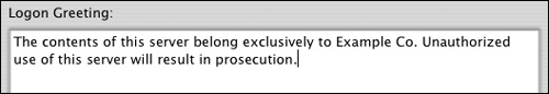 By default, the logon greeting appears every time a user logs in to your server via the AFP service.