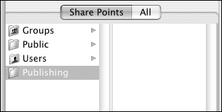 | 3. | To configure an existing share point, click the Share Points tab , and then select the share point you wish to edit from the sharing browser (Figure 5.99).