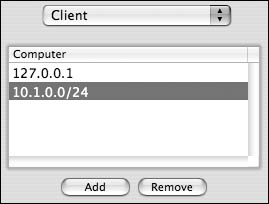 Client limits this NFS export to a list of specific clients (Figure 5.104). Click Add or Remove to manage this list.