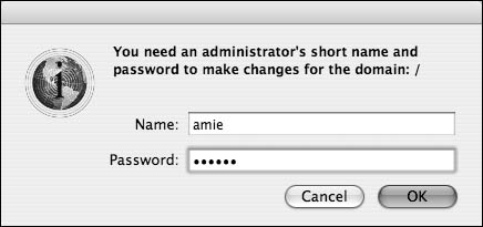 | Although it's native to Mac OS X, the Network File System (NFS) service is very different than all the other file services available. The main difference is that the NFS service trusts the client's computer for authentication instead of the user. Specifically, rather than allowing the user to authenticate the connection, NFS requests the user identification number (UID). As long as the user's local UID matches a UID on the server, the NFS connection is authenticated. If the permissions allow everyone access, any UID that doesn't match a UID on the server is authenticated as a guest. For more information about UIDs, see Chapter 4, "User and Group Management." To understand why NFS uses this type of authentication, you have to know where NFS comes from. The NFS service was first used by Unix terminals to access files on mainframe servers. Early Unix implementations relied on a unified directory service to authenticate users to any terminal computer. Because every user had to authenticate to the directory server before they had any computer access, it was safe to assume that once they were logged in to the terminal they were who they said they were. Thus, the NFS service requested the UID from the terminal computer. In today's modern computing environment, which is rife with commodity personal computers, login authentication is often delegated to a local account. Even worse, on Mac OS X client computers, the local administrator accounts (UID 501) and root accounts (UID 0) have the same UIDs on your Mac OS X Server! However, this section discusses a variety of options that let you properly configure NFS share points, called exports, and protect them from such security risks. To set up an NFS export: 1. | Launch the Workgroup Manager tool located in /Applications/Server, and authenticate as the administrator (Figure 5.98).