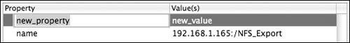 Add two properties: vfstype and dir. The vfstype value is nfs. The dir value is the local mount point of the NFS export: /nfs_reshares/<share name> (Figure 5.117).