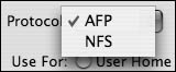 | 7. | From the Protocol pop-up menu, select either AFP or NFS as the share point's protocol (Figure 5.140).