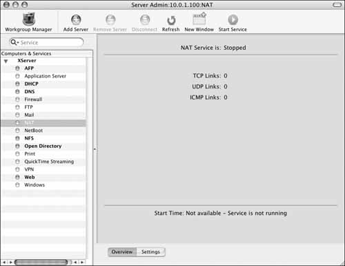 Mac OS X Server can perform Network Address Translation (NAT), which takes requests (for example, a request for a Web page) from machines connected to one network interface and submits them as if the server had made the request. Enabling NAT doesn't require two network interfaces, but it's suggested. Any Macintosh that supports Mac OS X Server can perform NAT. This function is also found in inexpensive wireless routers, such as Apple's AirPort Base Station.