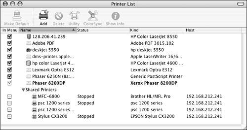 Mac OS X Client supports many types of printers, including network and directly connected printers. This section, however, focuses specifically on using the Printer Setup Utility to add printers shared from a Mac OS X Server. These printers are available to all users on the client.