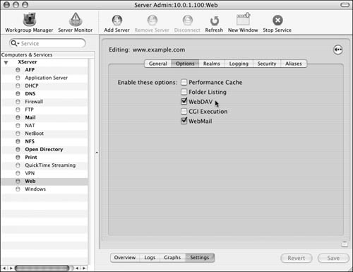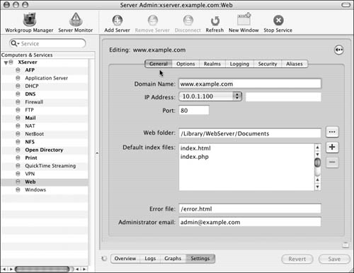 | 2. | Select the Web service for your server in the Computers & Services list (Figure 9.39).