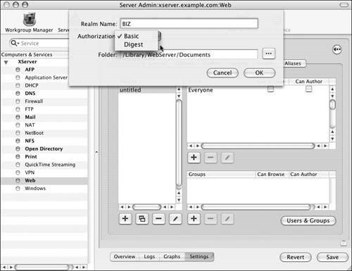 | 7. | Enter a name for the realm, and select an Authorization mode from the pop-up menu (Figure 9.43).