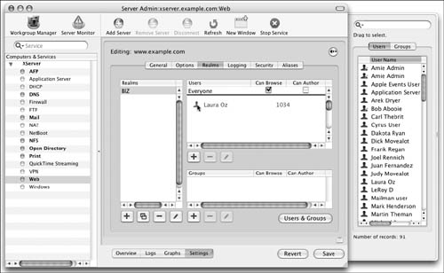 Users Click the Users tab , and then click and drag user accounts to the realm's Users list (Figure 9.53).