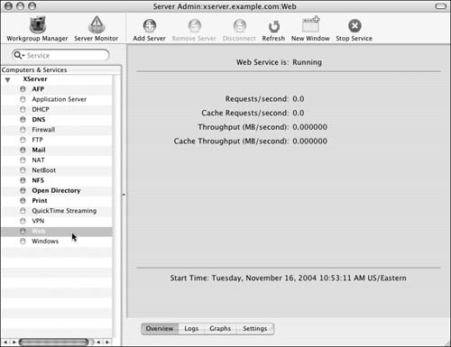 | 2. | Select the Web service for your server in the Computers & Services list (Figure 9.47).
