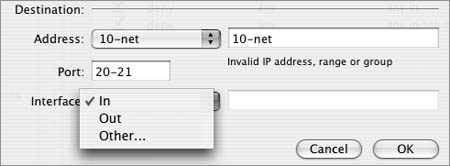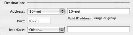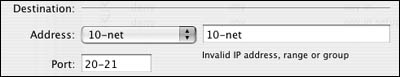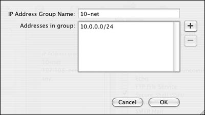 You can choose from any IP address group in the Address pop-up menu, use a subnet, or use a range of IP addresses (Figure 10.29).