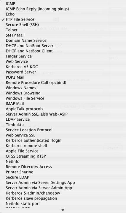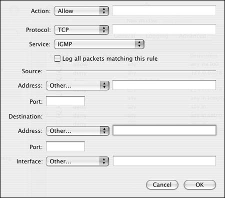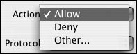 | 6. | From the Protocol pop-up menu, choose one of the following protocols to allow (Figure 10.24):