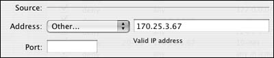 | 8. | In the Source section of the dialog, enter the IP address of the computer that is connecting to your server and the port from which the connection is coming (Figure 10.28).