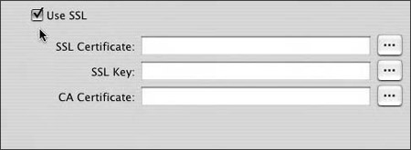 To utilize SSL for both incoming (POP and IMAP) and outgoing (SMTP) mail from the pop-up menu next to the SMTP SSL and IMAP and POP SSL text, choose one of the following methods (Figure 10.83):