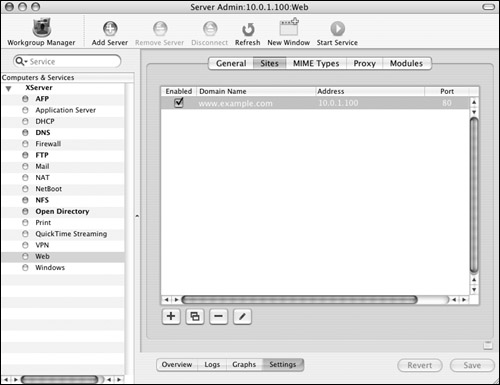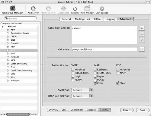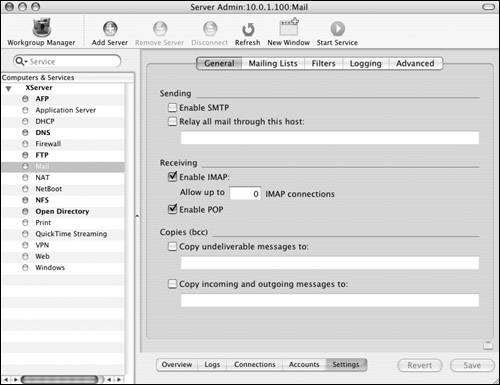 | 2. | Choose the Mail service from the Computers & Services list, and click the Settings tab (Figure 10.81).