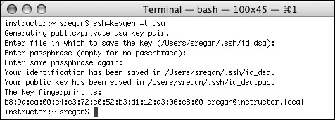 | 2. | Enter the command ssh-keygen t dsa, and press the Return key (Figure 10.85).