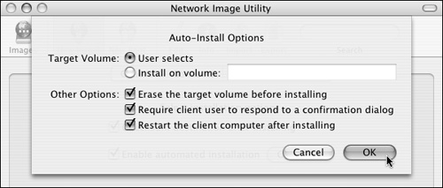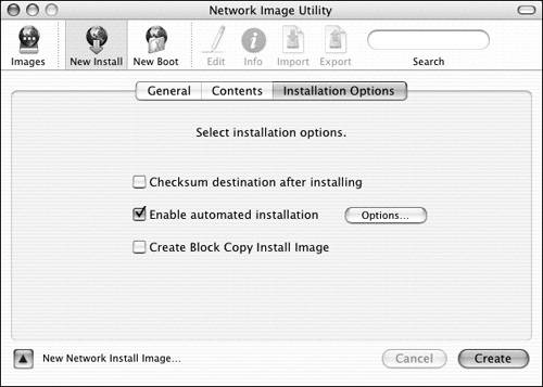 3. | Under the Installation Options tab of the Network Image Utility, select the "Enable automated installation" check box (Figure 11.26).