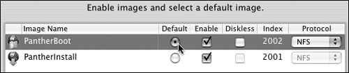 4. | In the Default column, select the radio button next to the image you want to make the default NetBoot image (Figure 11.56).