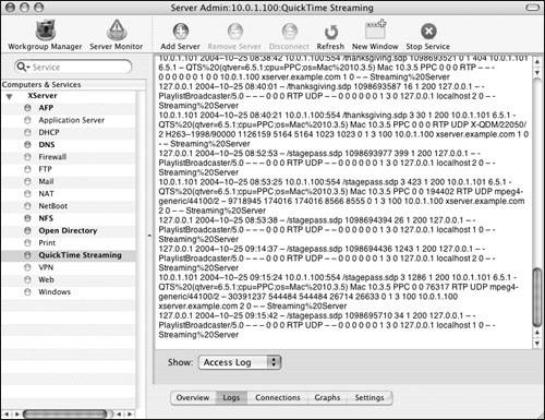Log displays both the Error and Access logs, allowing you to monitor your QTSS (Figure 12.11).