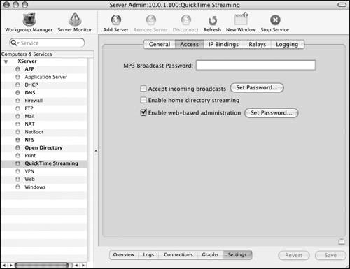 2. | Click the QuickTime Streaming service, click the Settings tab, and then click the Access tab (Figure 12.20).