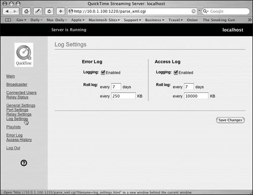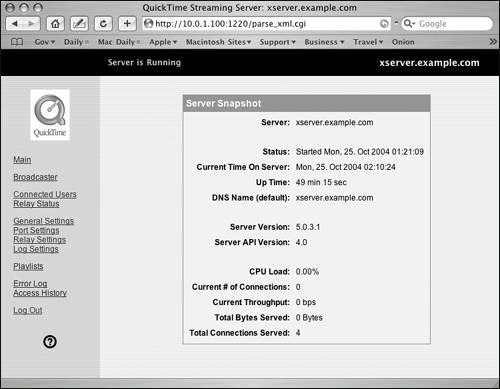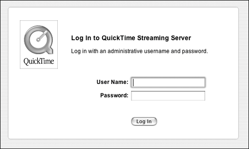 Another way to administer QTSS is through the use of a browser, such as Safari. Server Admin can be fine for the task of administration, but if you've installed the Darwin Streaming Server on another operating system or Mac OS X Client, you should be aware of Web-based administration.