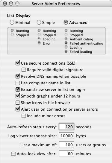 Figure 2.52. You can customize Server Admin in the Server Admin Preferences dialog.