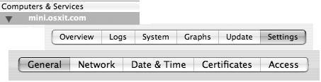 | Mac OS X Server can support user and group management on older versions of the Macintosh operating system, in case you need to support them. This is good, because Mac OS 9 and Mac OS X are clearly very different operating systems; thus they require different applications for user preference management. The Workgroup Manager tool is used to manage Mac OS X user preferences, whereas the Macintosh Manager tool is used to manage Mac OS 9 user preferences. Furthermore, Workgroup Manager uses Open Directory to store all user information, whereas Macintosh Manager uses a separate database for managed user preferences. However, Macintosh Manager still uses Open Directory for user authentication. In other words, you use Workgroup Manager to create and manage all user accounts, but you must use Macintosh Manager to control any user's Mac OS 9 preferences. To enable Macintosh Manager on an upgraded server 1. | Launch Server Admin and authenticate to the server you intend to configure.