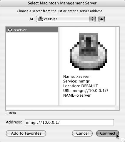 You can also manually type the server's name or address in the Select Macintosh Management Server dialog (Figure 2.80).