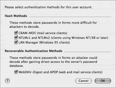 - If the user account is in a local directory, the password is a Shadow Password. Your choice is to set the authentication methods using the Security button (Figure 4.23).