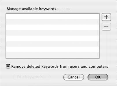 Figure 4.27. Navigate to the Advanced tab in Workgroup Manager and click the plus button to add keywords.