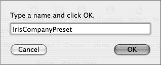 A dialog drops down from the title bar, in which you can enter a name for your preset (Figure 4.79).