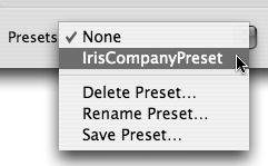 | 2. | From the Presets pop-up menu, select Save Preset.