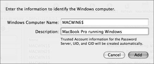 | 5. | Enter the appropriate information, including adding a dollar sign ($) at the end of the computer name, and then click Add.