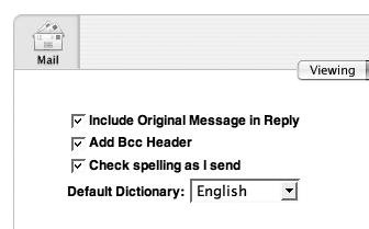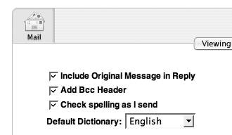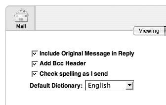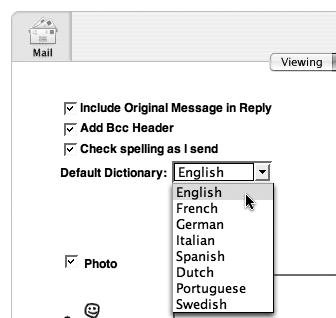 Figure 2.71. Check the last box to have your message's spelling checked when you send it.  | 2. | From the Default Dictionary pop-up menu, choose a language (Figure 2.72).