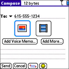 Figure 9.5. You can use the Compose screen to add a voice memo, picture, or video clip to a multimedia message.
