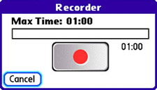 Figure 9.6. The Recorder screen is used to record voice memos for multimedia messages.