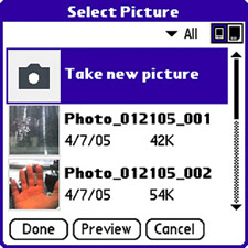 Figure 9.7. The Select Picture screen gives you the option of taking a new picture or selecting an existing picture to add to a multimedia message.
