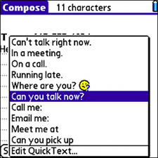 Figure 9.3. You can use the QuickText feature to quickly enter common sentences and phrases into text messages.