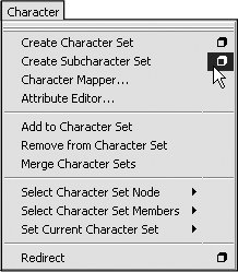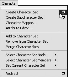 | 4. | From the Character menu, select the check box next to Create Character Set (Figure 12.66).