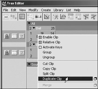 | 11. | From the Create menu in the Trax Editor, select the check box next to Clip (Figure 12.71).