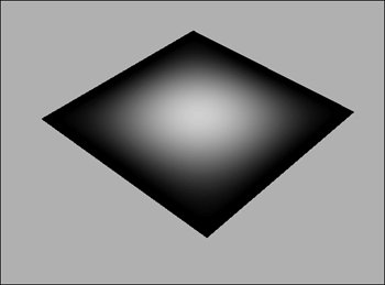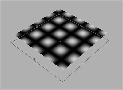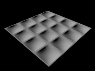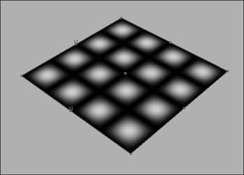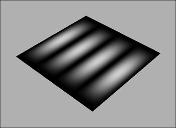 Figure 14.47. This is a rendered image of a plane with a bulge texture mapped to its bump. Render to see the bumpit doesn't show up in the Perspective view.  | | | 8. | In the Work Area, double-click the bump2d node. It may help to click Rearrange Graph to find the node.