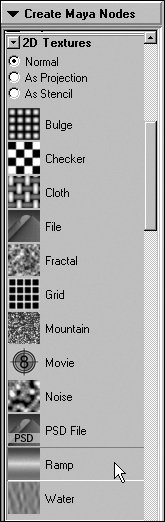 | 2. | Open the Hypershade, and, in the Work Area, double-click the ramp texture.