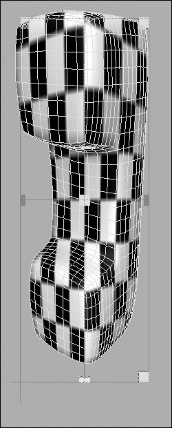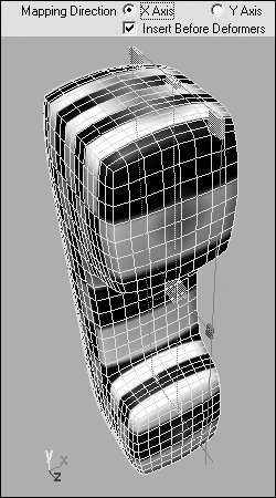 Figure 14.107. The projected mapping manipulator projects down the y axis.  | | | 11. | Repeat step 10, but click the Z Axis button to project down the z axis (Figure 14.108) or click the X Axis button to project down the x axis (Figure 14.109).