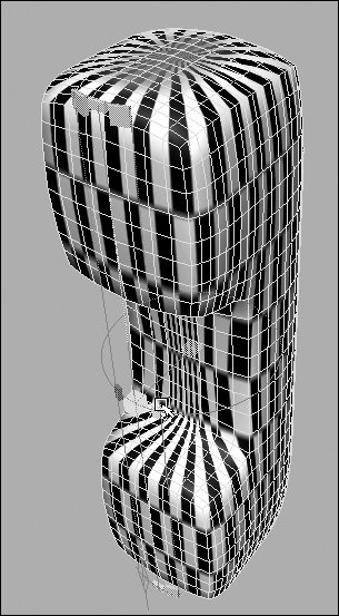 Figure 14.112. The object deforms, and the texture sticks to it. | 17. | Deselect Insert Before Deformers, and click Apply again.